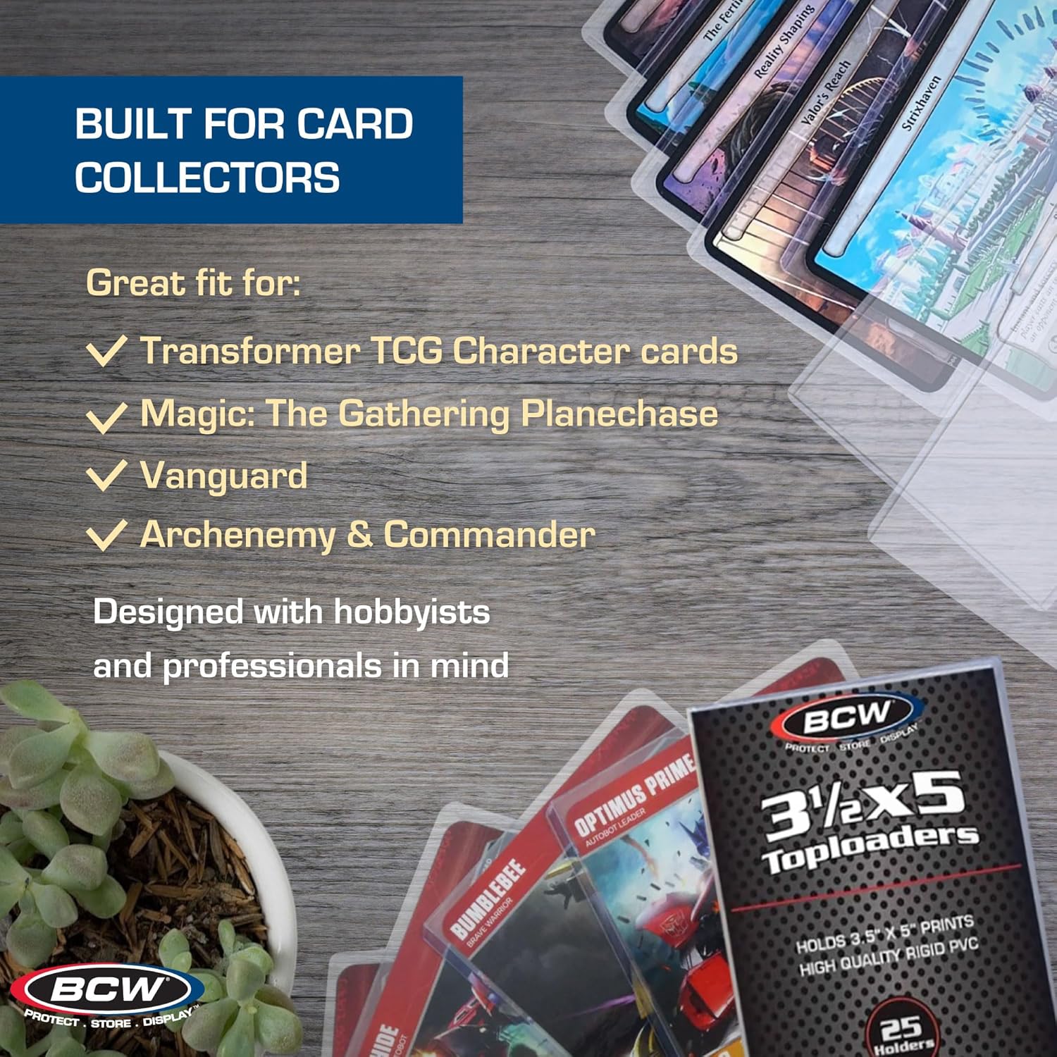 BCW 3.5x5 Topload Holder - 25 Pack | Premium Rigid Plastic Protector Case for Trading Cards, Index Cards, and Photos | Perfect Fit for Transformer TCG, Magic: The Gathering, and More