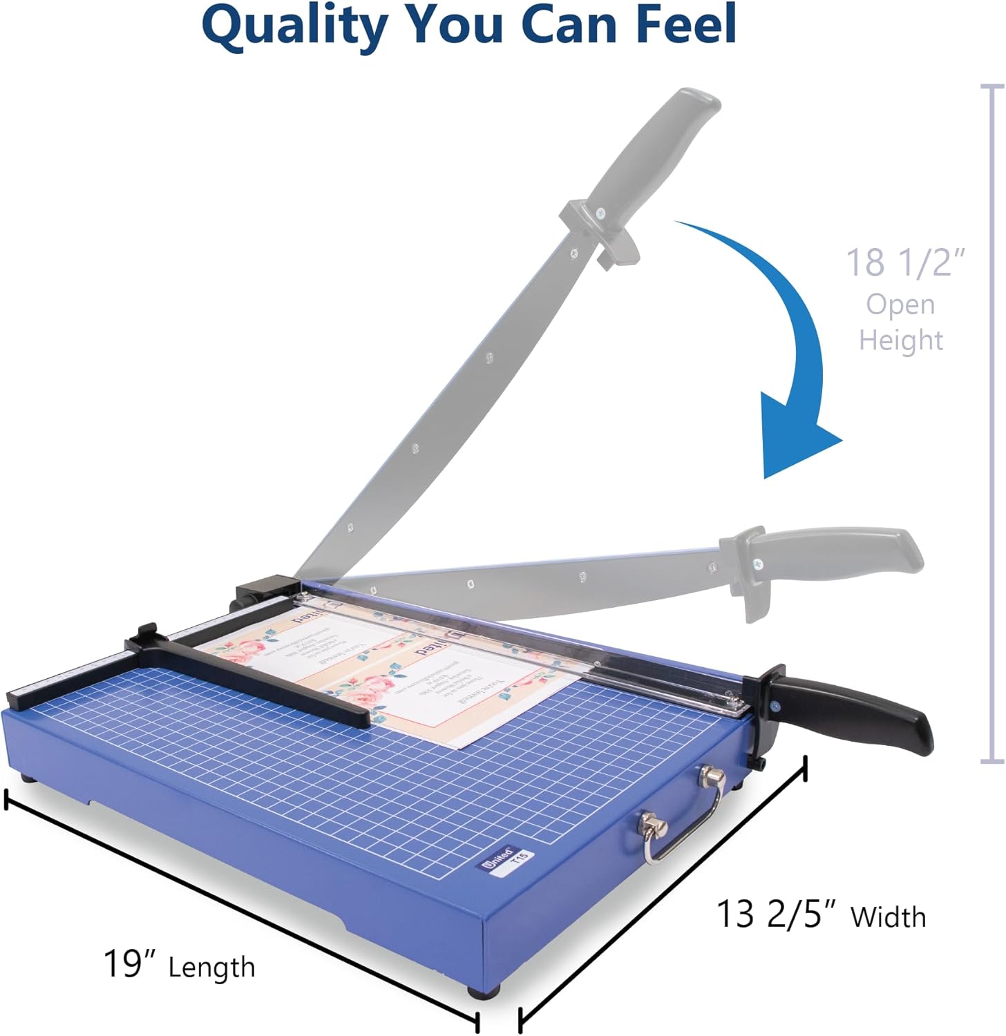 - PRECISION CUTTING: High-carbon steel guillotine cutter blade accurately cuts paper stacks up to 1/16β high or up to 15 sheets at a time. Solid steel paper cutter blade arm minimizes blade flex for comfortable and effortless paper trimming.