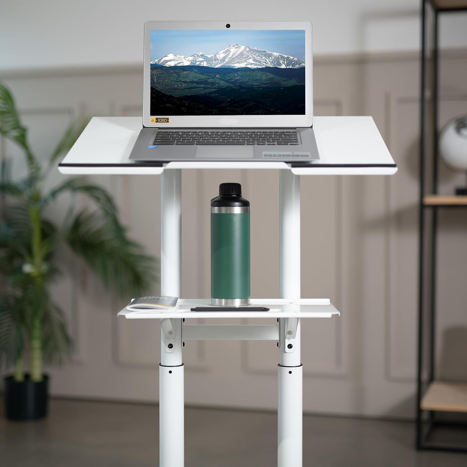 VIVO Mobile 24 x 16 inch Lectern Podium, Height Adjustable Steel Rolling Laptop Cart on Wheels, White, CART-V03W