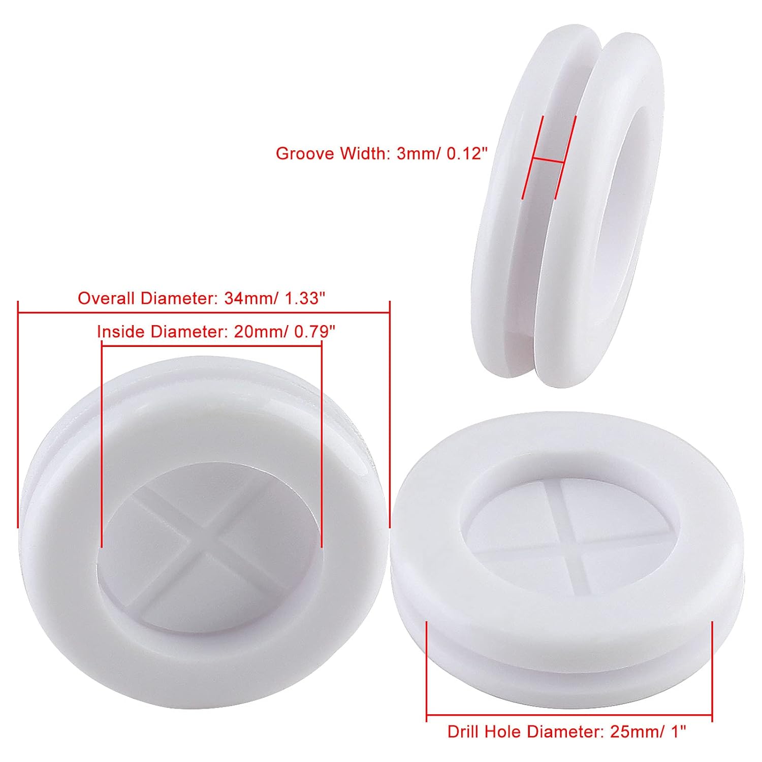 - Dimension: Inside Diameter: 20mm/ 0.79"; Drill Hole Diameter: 25mm/ 1"; Overall Diameter: 34mm/ 1.33". Groove Width: 3mm/ 0.12".