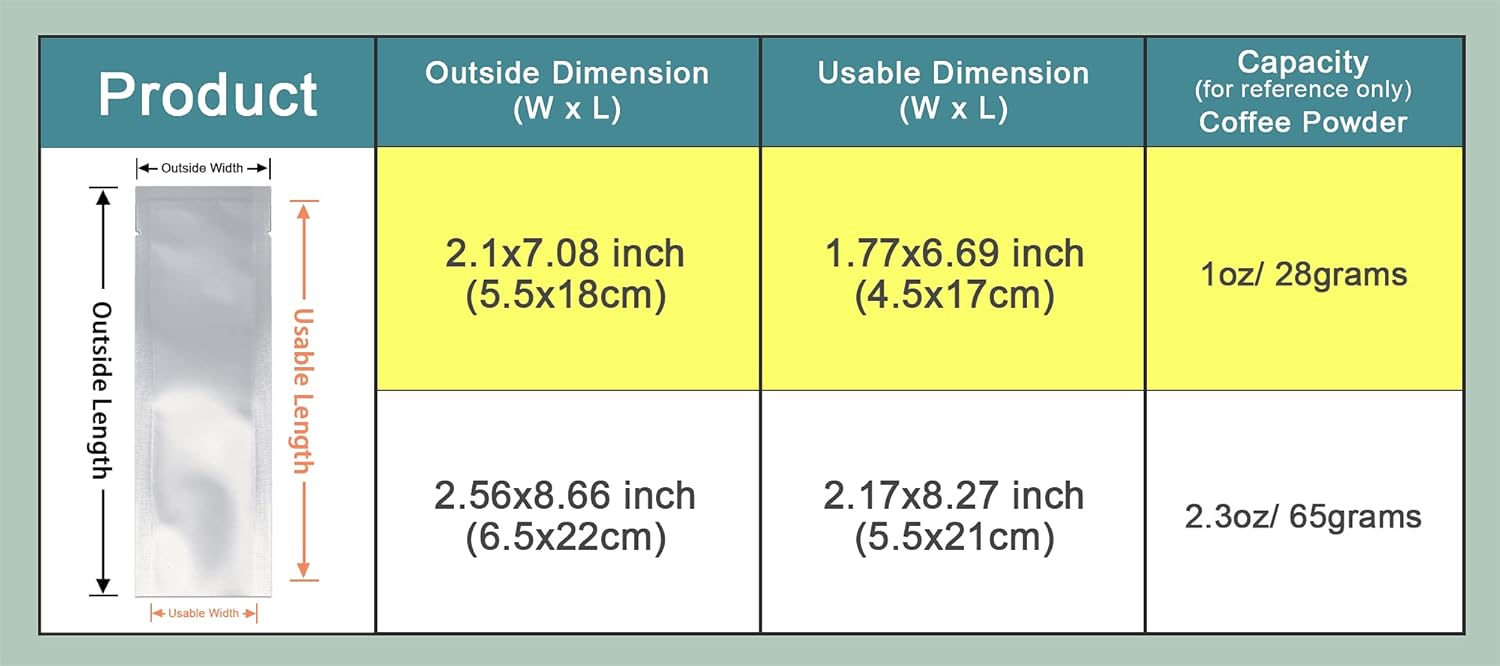 PABCK 500 Pcs 2.1x7.08 inch (Inside Size 1.77x6.69 inch) Clear Front Vacuum Heat Sealable Pure Mylar Foil Bag for Travel Sampling Packaging Food Storage Aluminum Foil Candy Coffee Powder Package
