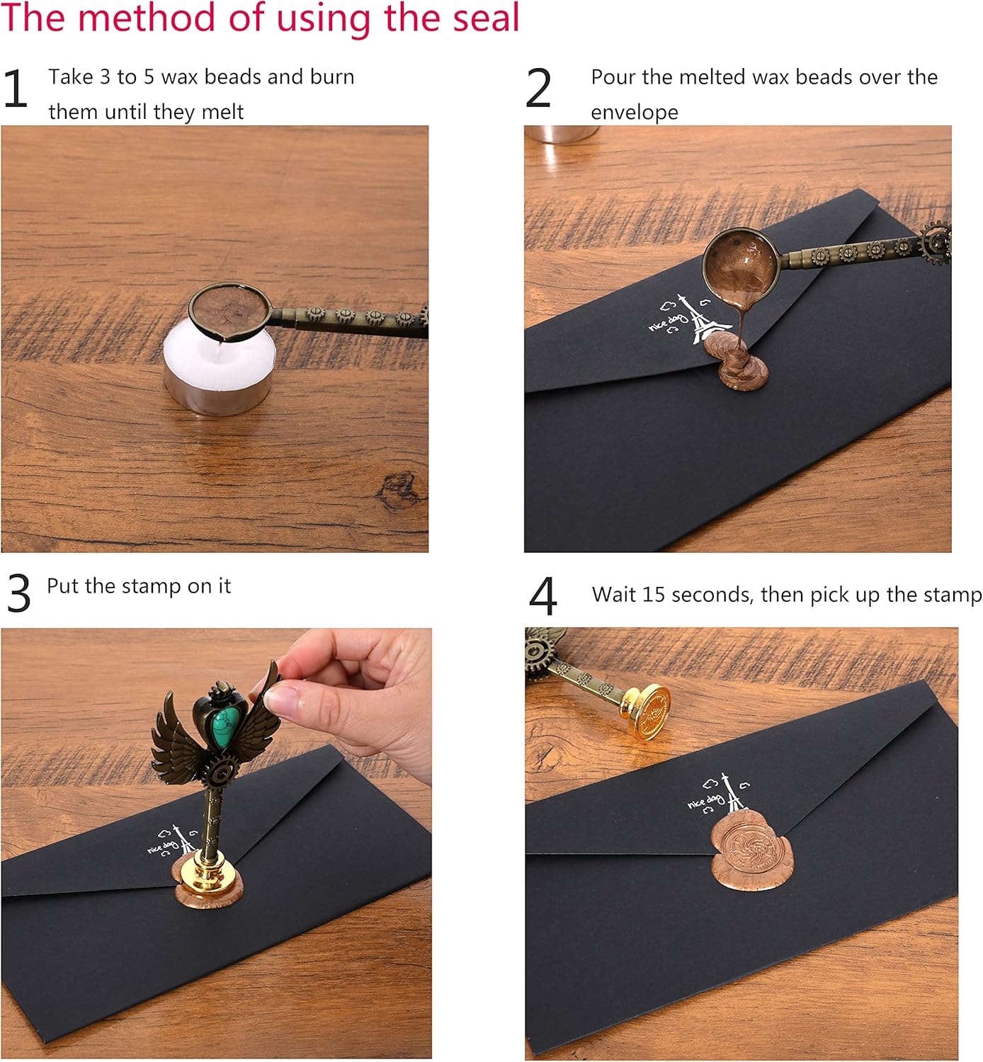 - 【Exquisite accessories】The wax seal is made of high quality brass with a jeweled top, perfect for decorating envelopes and gift boxes.The spoon and nib base are also inlaid with gems.Designed in the style of mechanical gears and wings, they are not only a set of writing tools, but also a work of art.