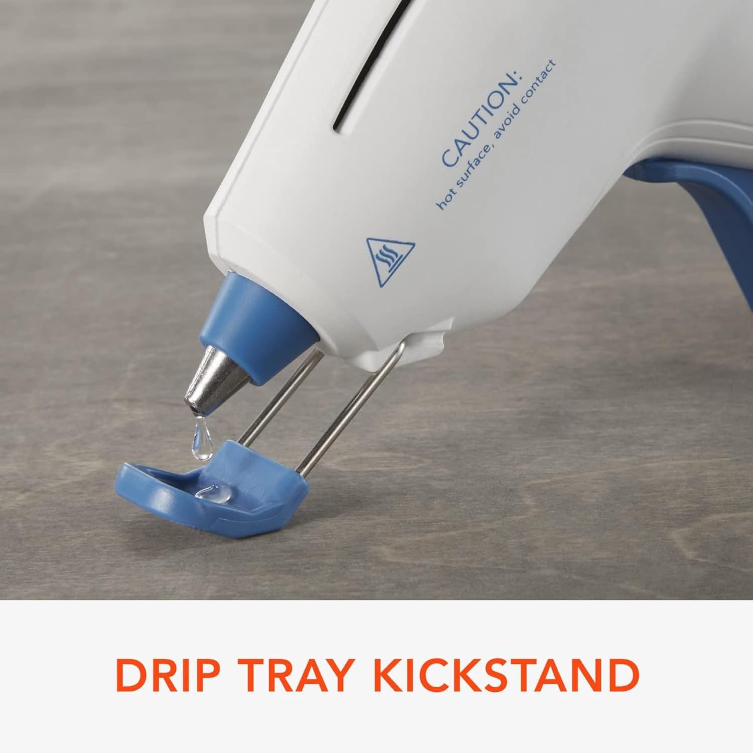 - CLEAN - Silicone coated drip tray catches drips and also serves as a clever kickstand. Keep work spaces clean without the need for extras like a glue gun stand or silicone mat.