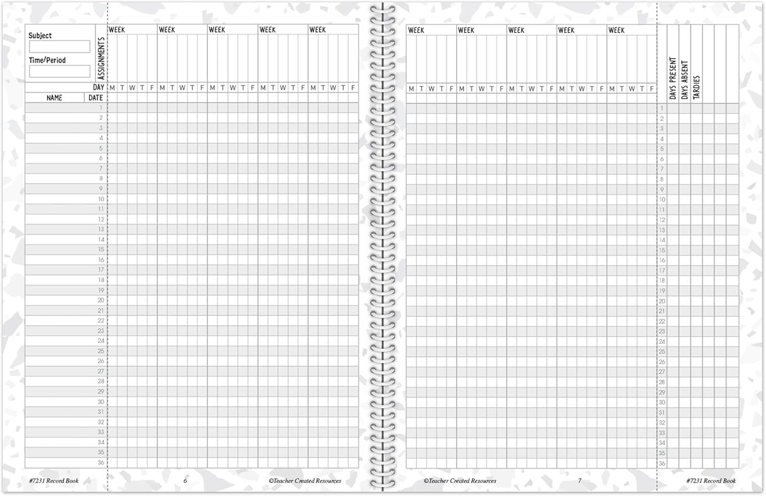 - This stylish record book will add joy and inspiration to your day Plenty of space is provided to record grades for assignments, tests, attendance, or other notations. Each two page spread allows enough space for 10 weeks worth of record keeping.