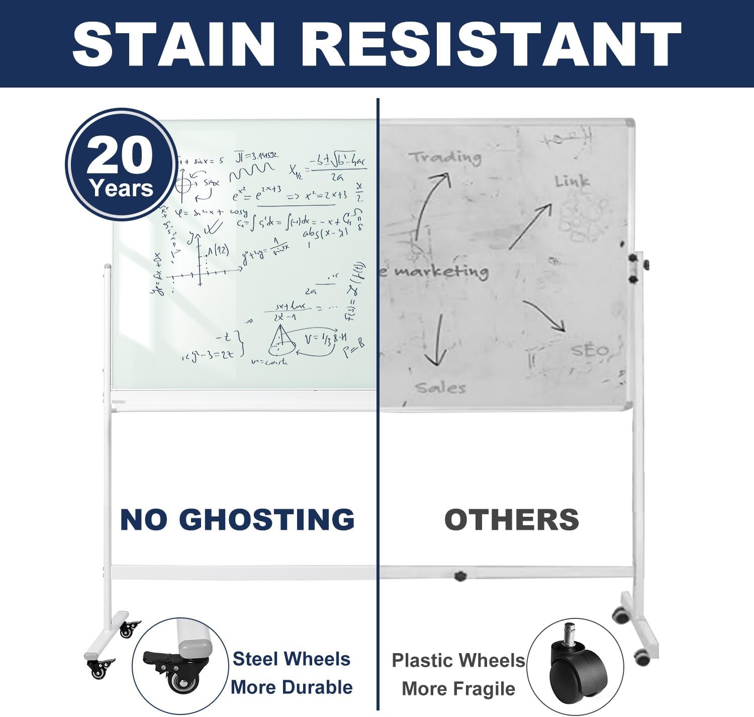 - BEST GIFT IDEA: Best Gift as a rolling whiteboard, school supplies, standing easel on wheels, magnetic white board and sign board for your Office, Home or Classroom! All ages will like this premium white board. The rolling glass whiteboard brings them better organization, teaching and learning.