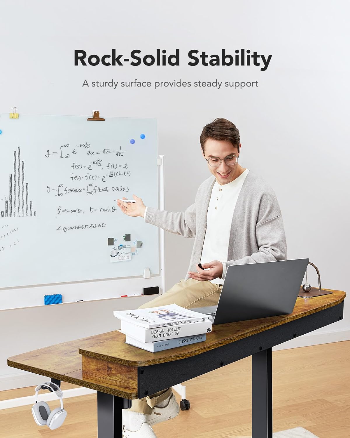 - Rock-Solid Stability. Crafted with an automotive-grade cold-rolled steel frame, our adjustable standing desk has been tested to withstand 50,000 lift cycles for long-lasting performance. Enjoy dependable lifting and superior durability for all your workspace needs.