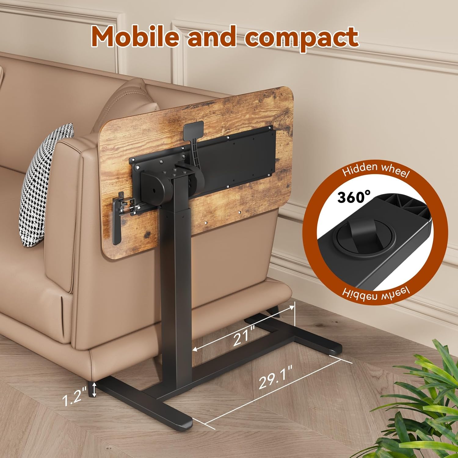 - 2 Types of Casters Included: Our mobile standing desk comes with 4 lockable casters, enhancing maneuverability on carpets. And the low-profile base features hidden wheels that tuck neatly under furniture at a minimum height of just 1.2", maximizing valuable space
