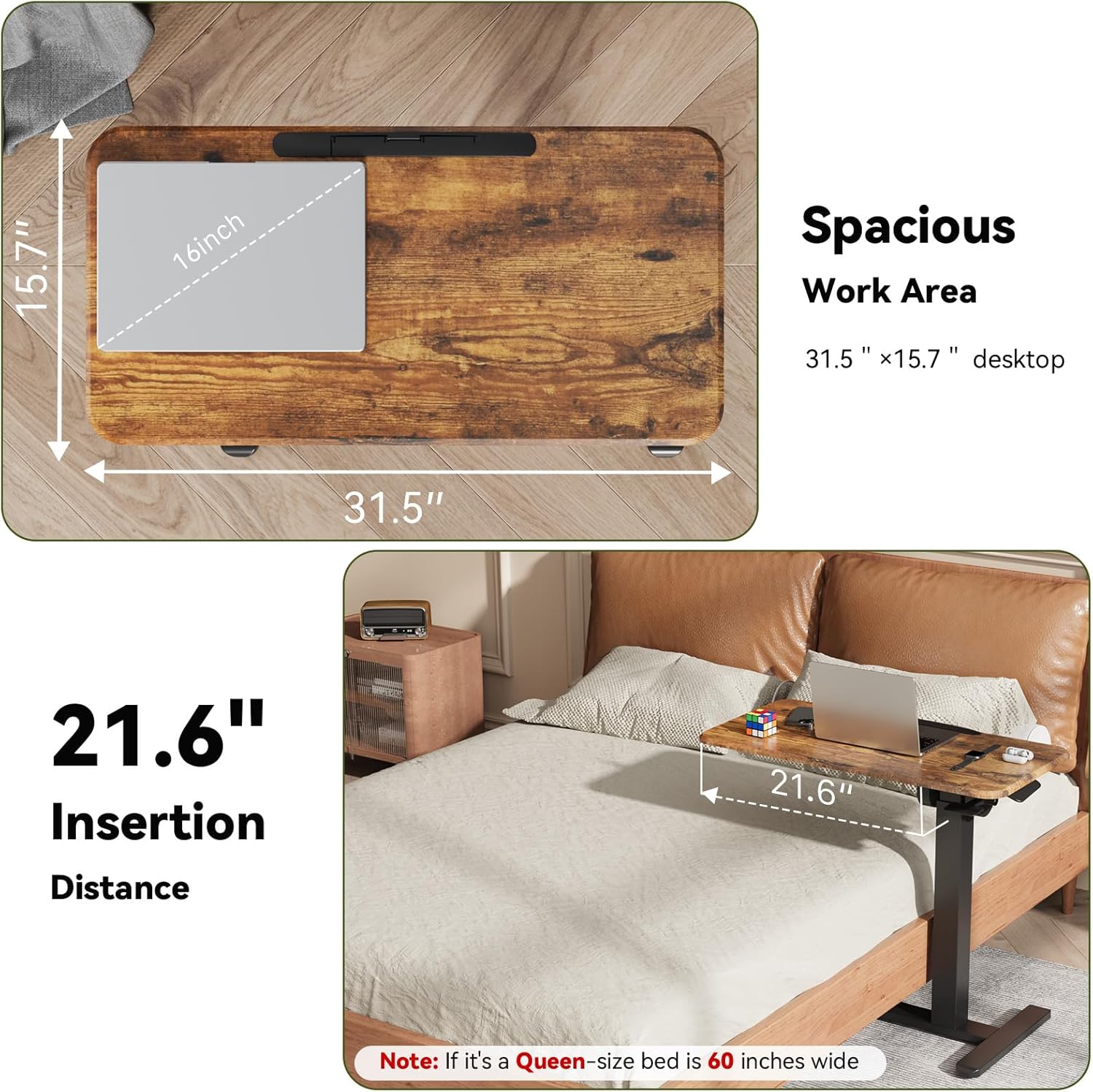- Multi-Functional Versatility: Serving as an overbed table, rolling desk, or hospital bed table, its spacious 31.5"W x 15.7"D desktop provides a sturdy surface for eating, reading, or working near beds, couches, or recliners