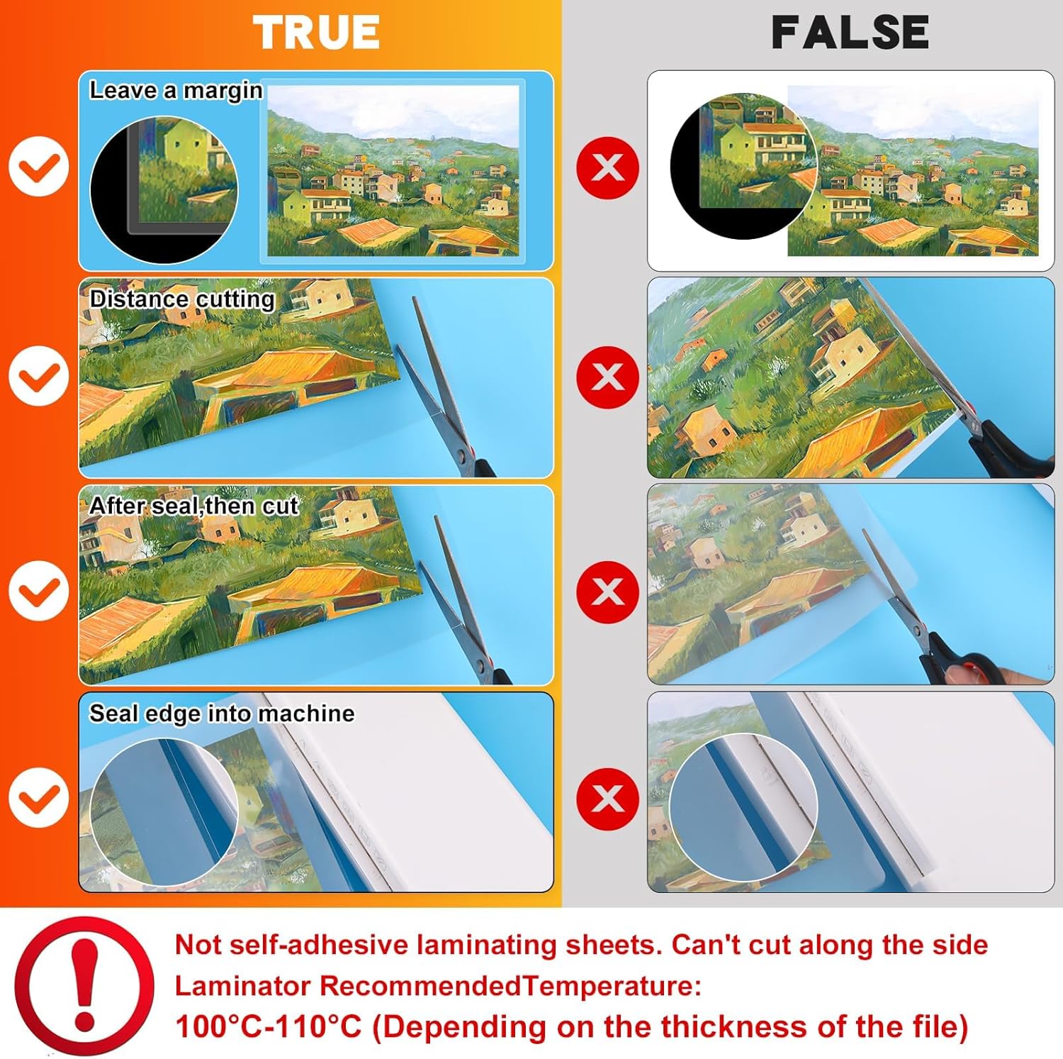 - Machine needed: Thermal laminator needed, not self-adhesive