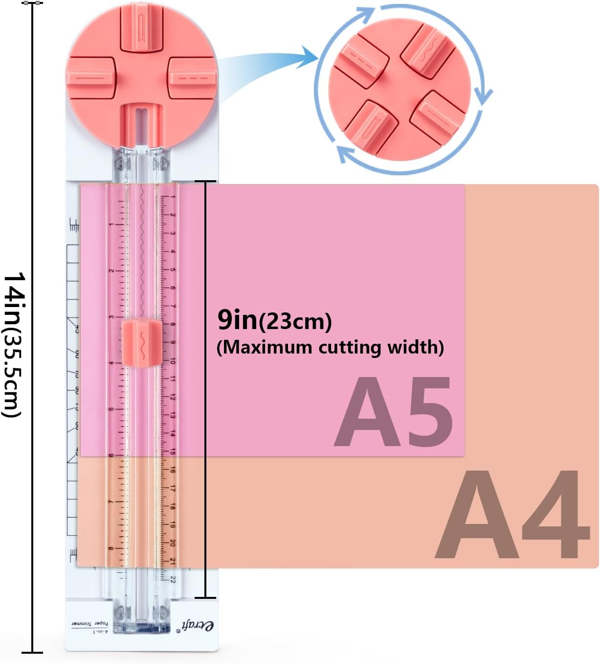 Ecraft Pink Paper Cutter 4-in-1 Paper Trimmer Multi-Function Scrapbooking Tool with Straight, Wave, Perforated & Creasing Blades for Craft Paper,Cardstock, Coupon, Label, Photo,Postcard