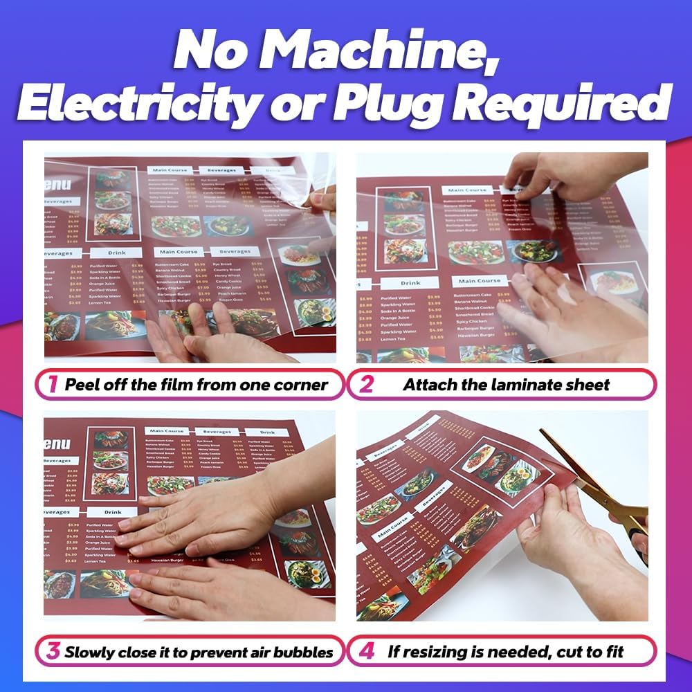 - Quick and Easy Self-Laminating: Effortlessly protect and preserve important documents, photos, and artwork with a quick, self-laminating process that requires no machines or heat.