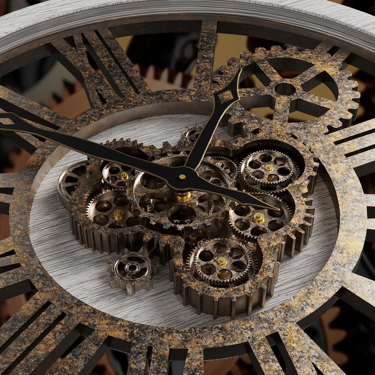 - WIDE APPLICATIONS: Oversized wall clock is not only a timepiece, but also a piece of artwork, greatly adding charm to a room, like living room, farmhouse, fireplace, bedroom or dining room, studio, gallery, loft, cafe, bar, club, etc. Rustic vintage wall clock will become an instant conversational piece for the moving gears and how cool it looks. Also awesome gifts for families or friends