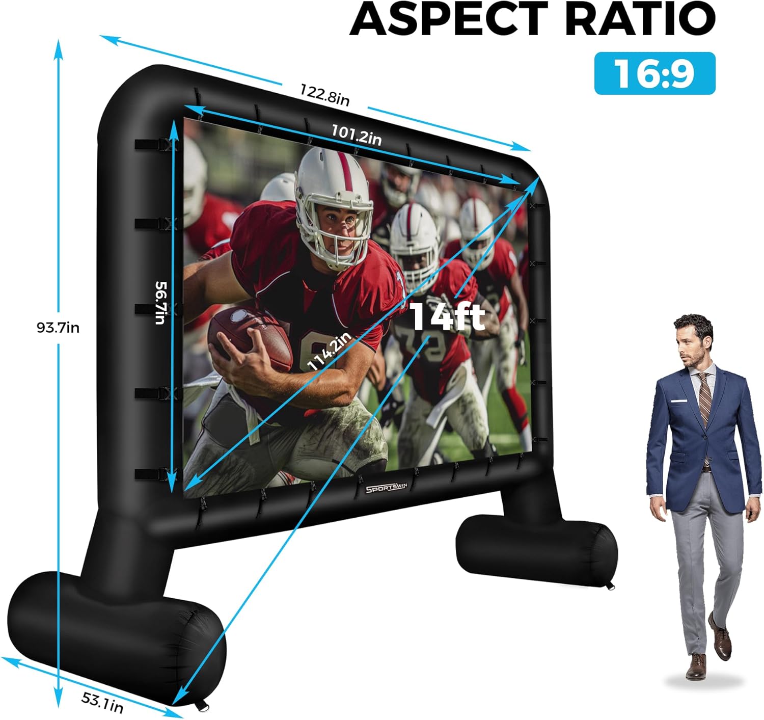 - ๐๐๐๐๐ฅ ๐๐ข๐ณ๐ ๐๐จ๐ซ ๐๐ฎ๐ญ๐๐จ๐จ๐ซ ๐๐ซ๐จ๐ฃ๐๐๐ญ๐ข๐จ๐ง- Our 14-ft inflatable movie screen outdoor offers the perfect size for outdoor projections. The screenโs 16:9 aspect ratio and front and rear white display canvas ensure a stunning viewing experience for all your special occasions, from movie nights to outdoor parties and special events.