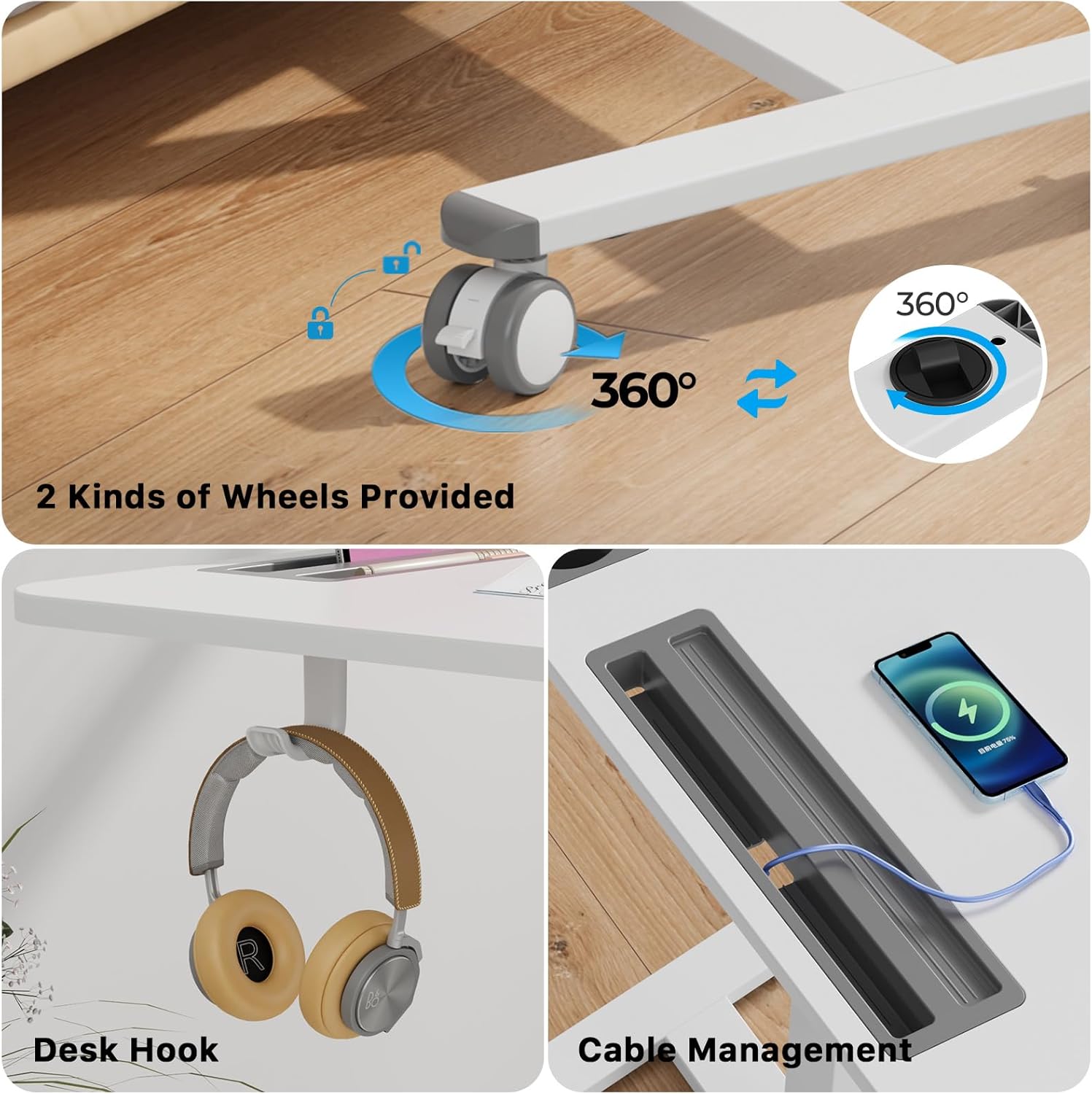 - 2 Types of Casters Available: Mobile Standing desk comes with 4 lockable casters enhance maneuverability on carpeted surfaces. And the low-profile base with hidden wheels tuck under the furniture at a minimum height of just 1.2β, optimizing valuable space