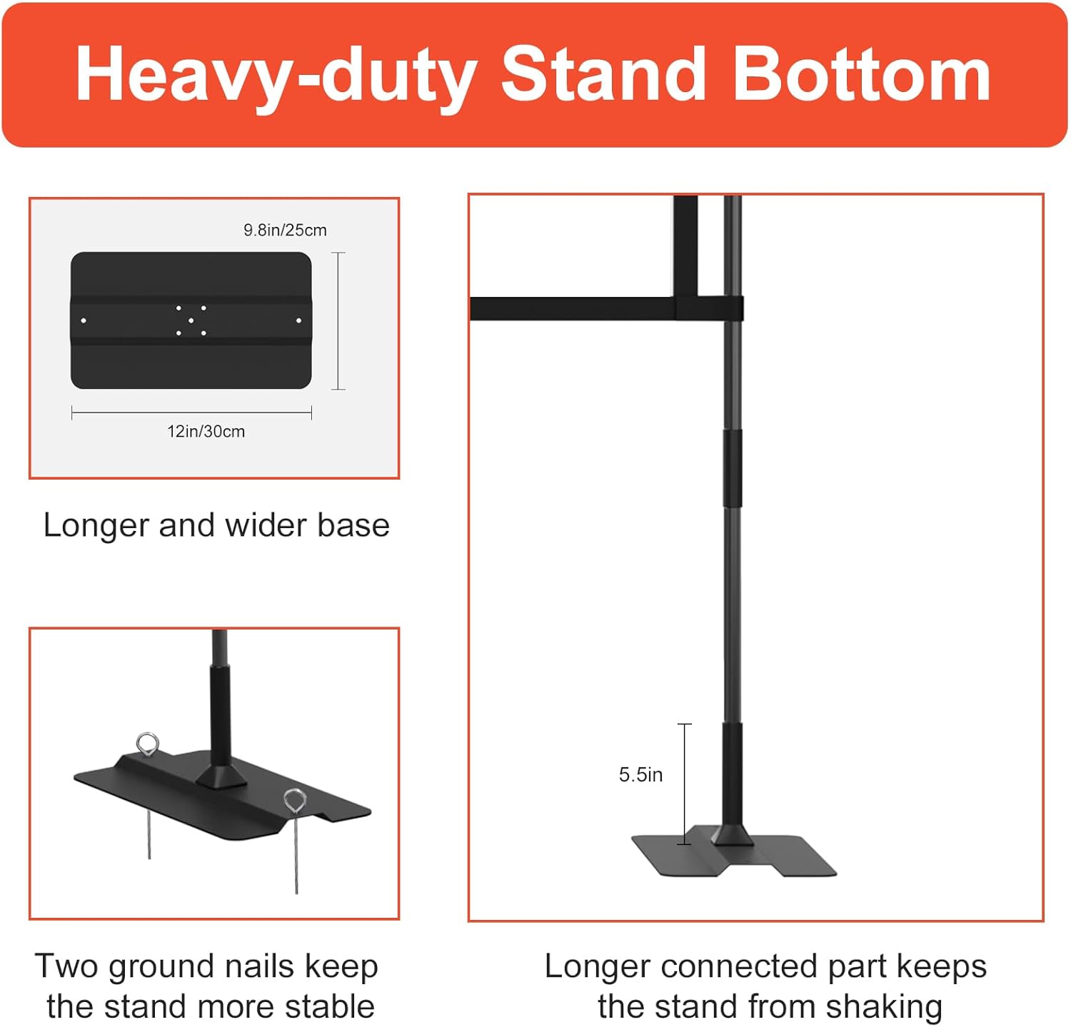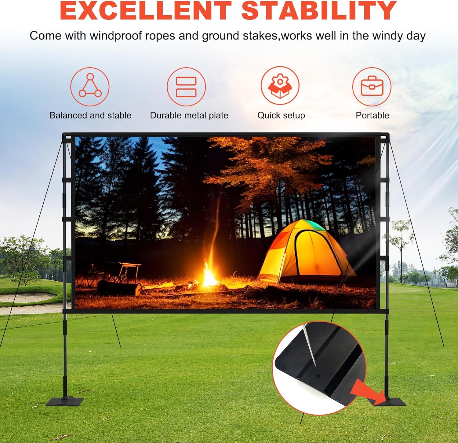 - 【VERSATILE USE FOR INDOOR AND OUTDOOR EVENTS】With its compact and practical design, the feet of the stand can be easily tucked under rugs or furniture without taking up much space indoors. Outdoors, it's durable enough for use during camping trips, backyard movie nights, commercial events, or even drive-in theaters, ensuring endless entertainment possibilities.