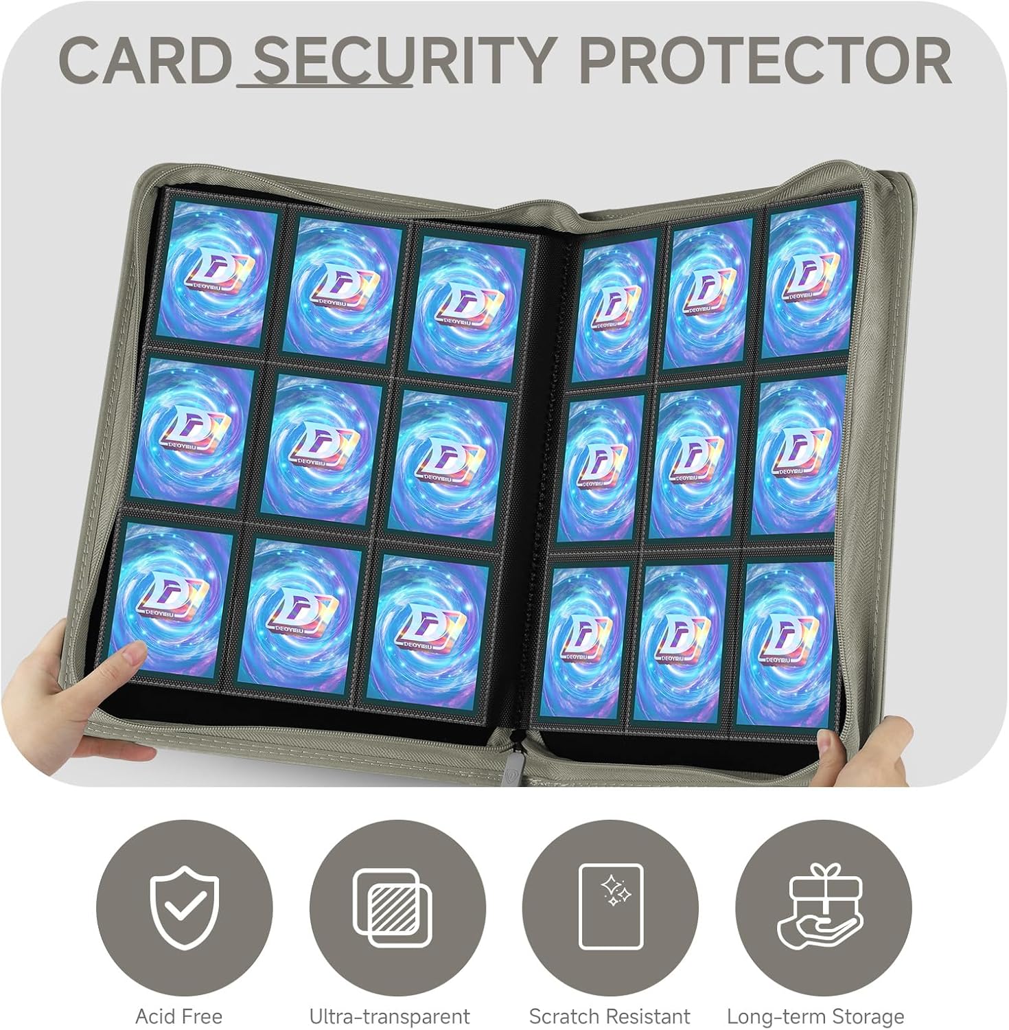- Thoughtful Details: Different coloured card binders are matched with different coloured zips to meet your personalised needs.Side card pocket to prevent card spillage.Thickened shell design,give your collectible cards stronger protection.
