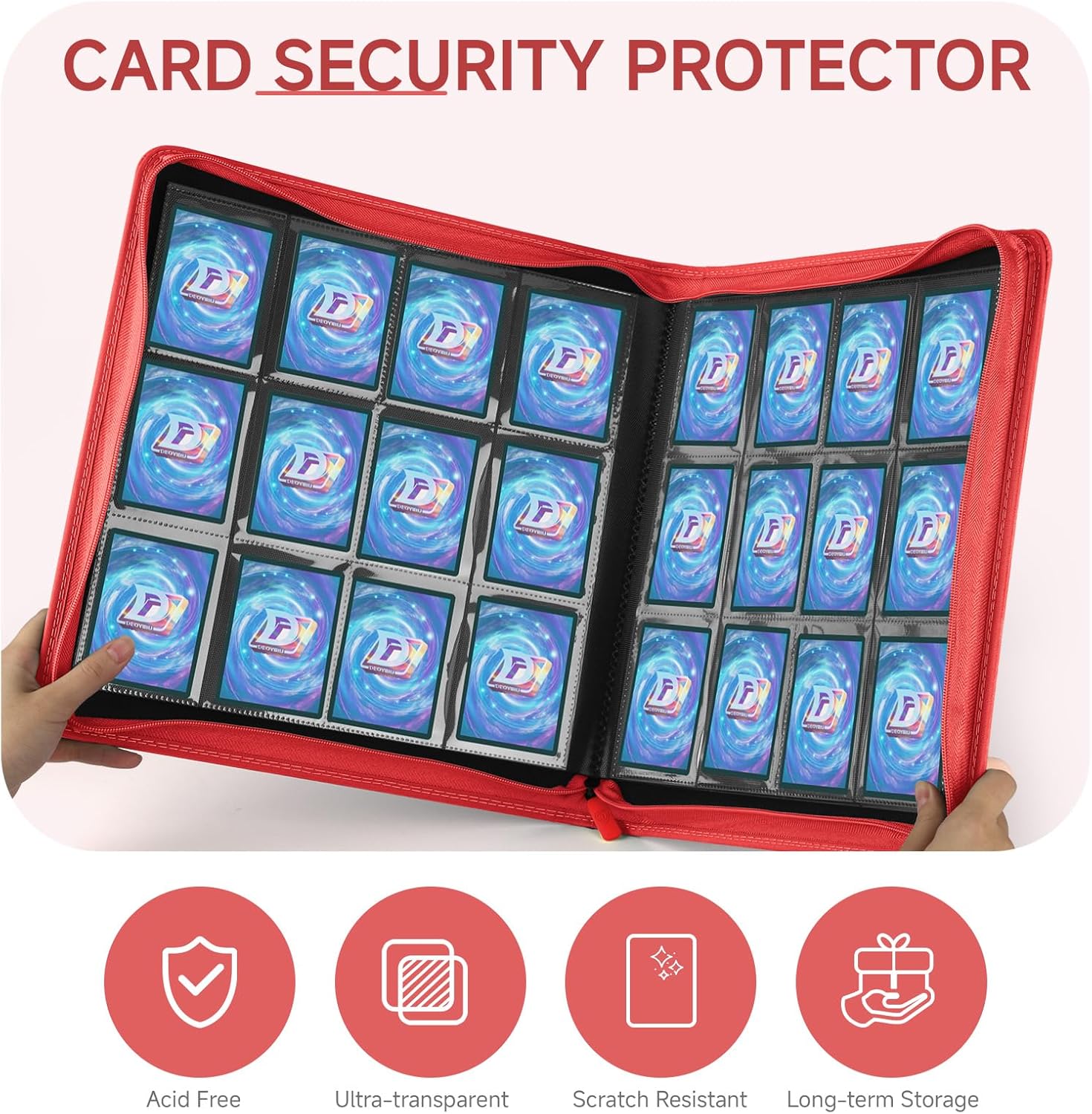 - Thoughtful Details: Different coloured card binders are matched with different coloured zips to meet your personalised needs.Side card pocket to prevent card spillage.Thickened shell design,give your collectible cards stronger protection.