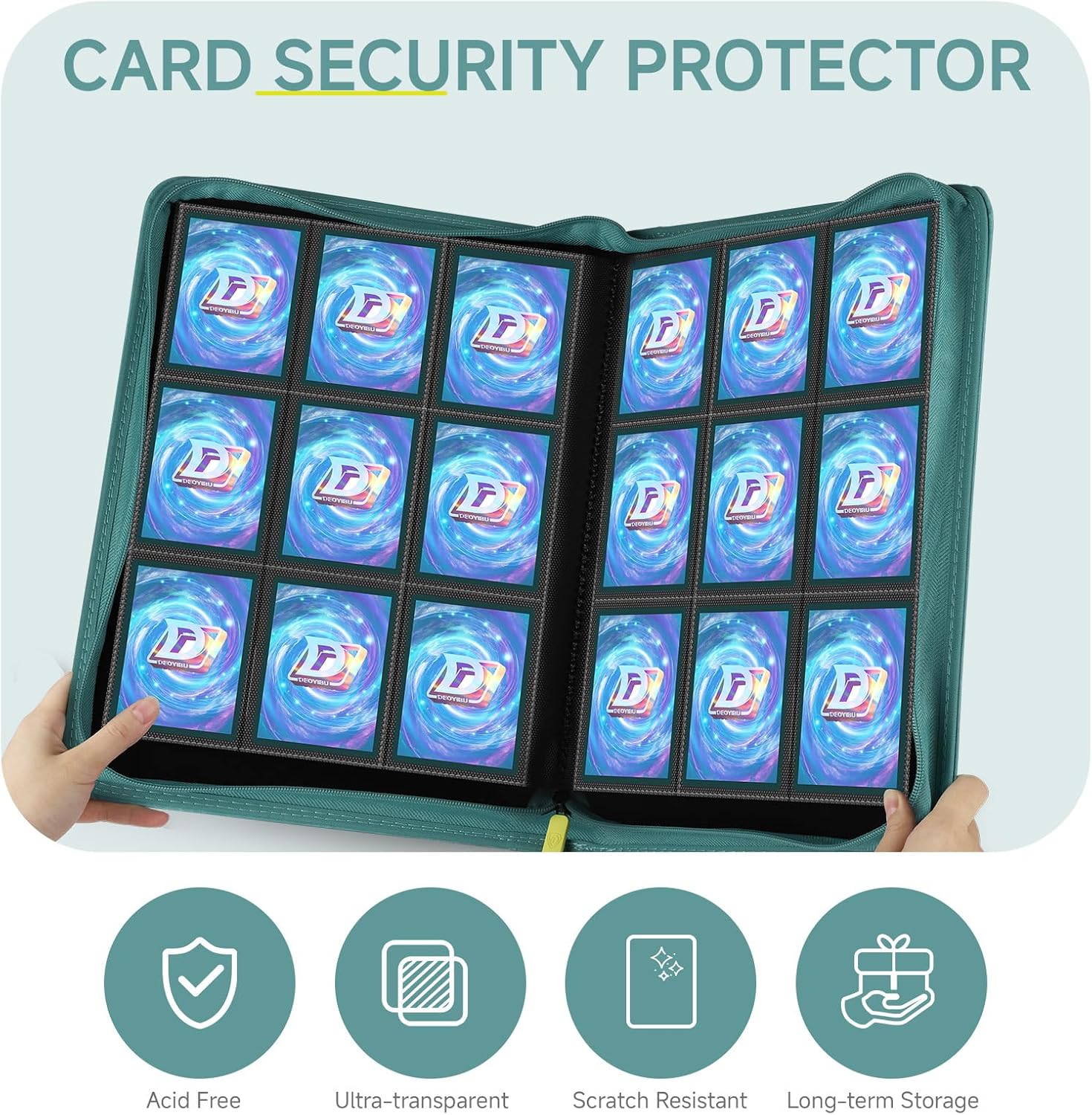 - Thoughtful Details: Different coloured card binders are matched with different coloured zips to meet your personalised needs.Side card pocket to prevent card spillage.Thickened shell design,give your collectible cards stronger protection.