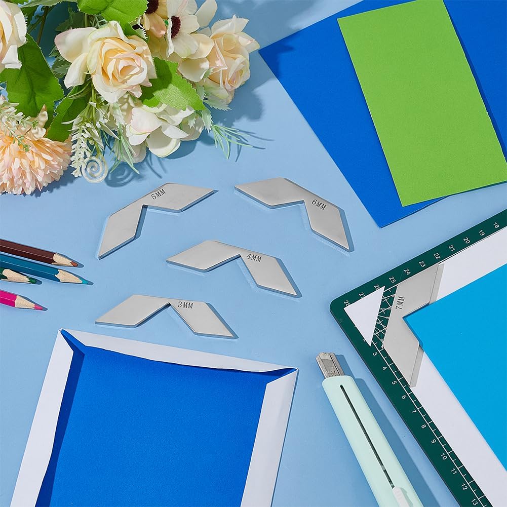 BENECREAT 5 Pcs 201 Stainless Steel Corner Miter Tool, 3/4/5/6/7mm Book Binding Corner Cutting Tool, Bookbinding Corner Cutting Jig Set, Bookbinding kit for Album Making, Bookbinding