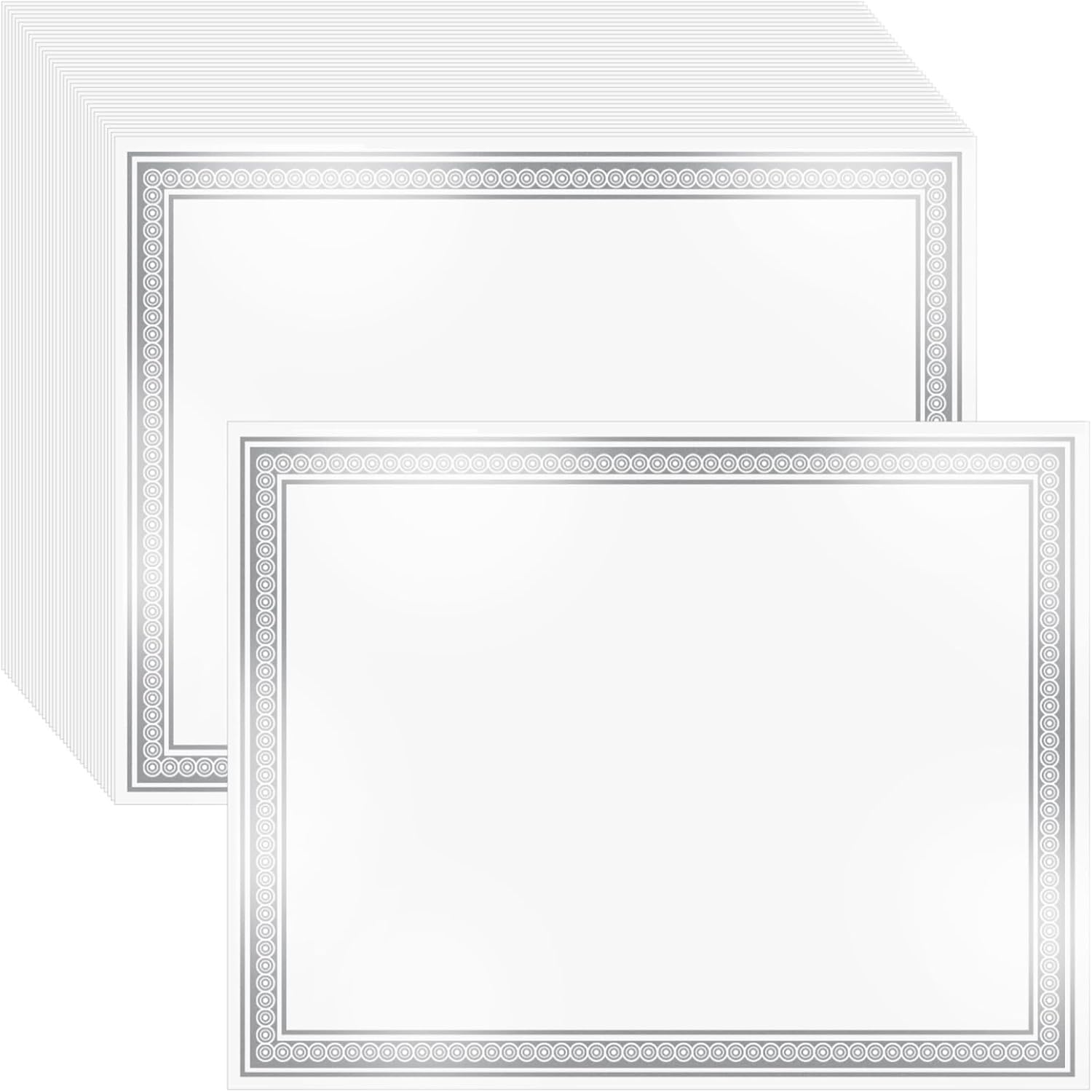 25 Count Certificate Paper 8.5 x 11 for Printing,Blank Silver Foil Border,Award Certificate Paper for Business,Graduation Diploma,School and Achievement (White)