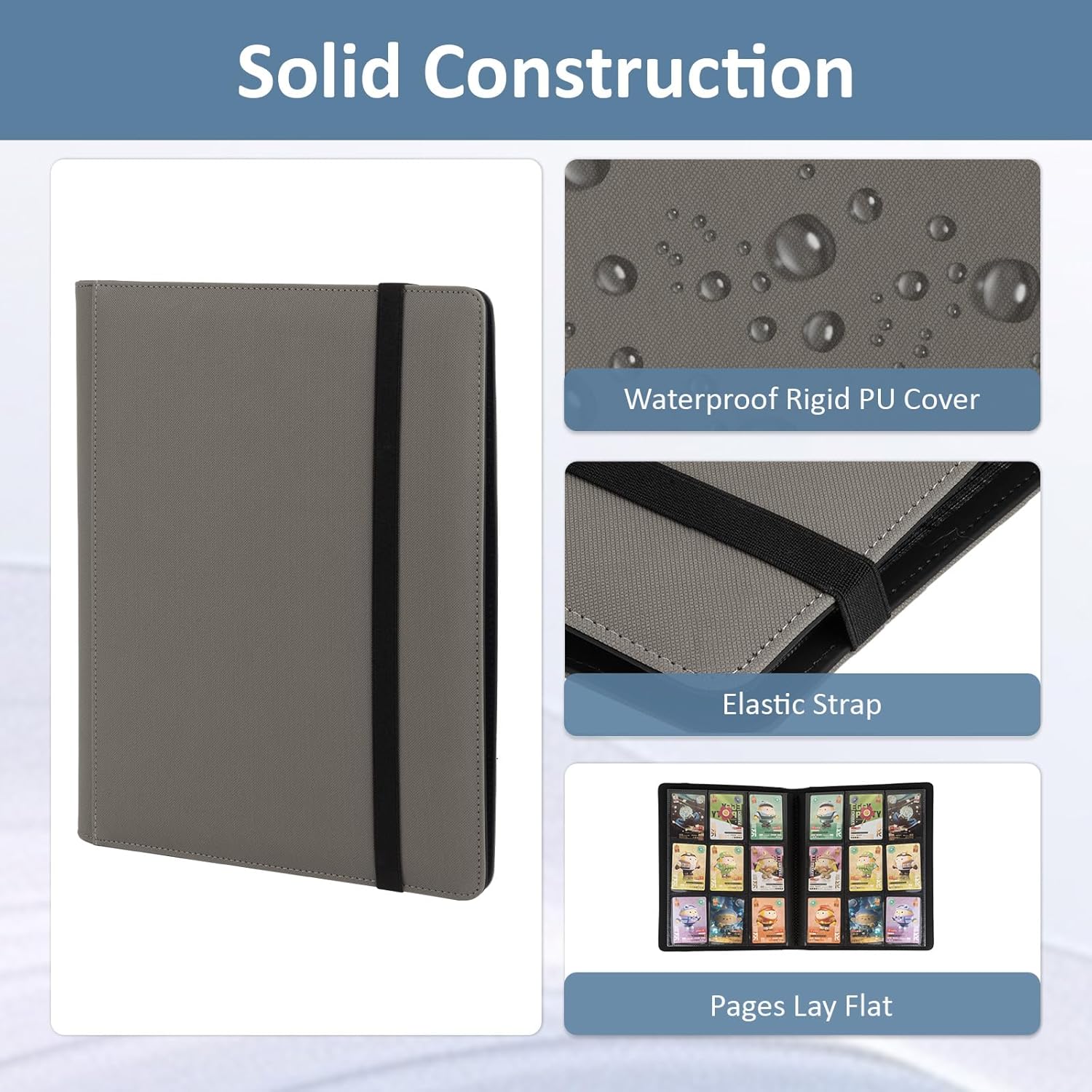 Trading Card Binder 9 Pocket, Fvxldcz PU Cover Card Collection Binder 540 Cards Sleek Side-Loading Card Album, Sturdy Card Collection Folder for TCG, MTG, Yugioh, Sport Cards (Gray-2)