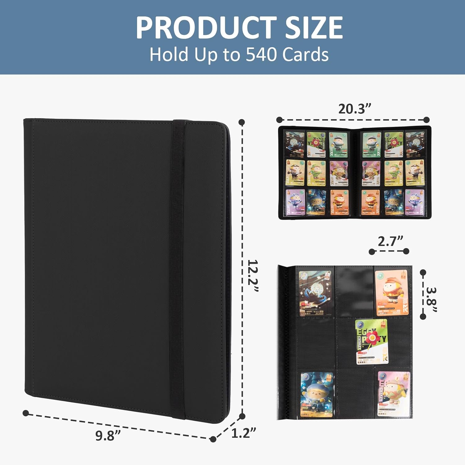 - 【Perfect Fit for Variety Collectible Cards】Pocket Size: 2.7" x 3.7". Card Album Size: 12.9" x 10.1" x 1.9". Well designed to fit sleeved cards for double protection. Compatible with multiple standard cards, perfect for MTG cards, yugioh cards, TCG cards, sports cards, cards from board games, and more.