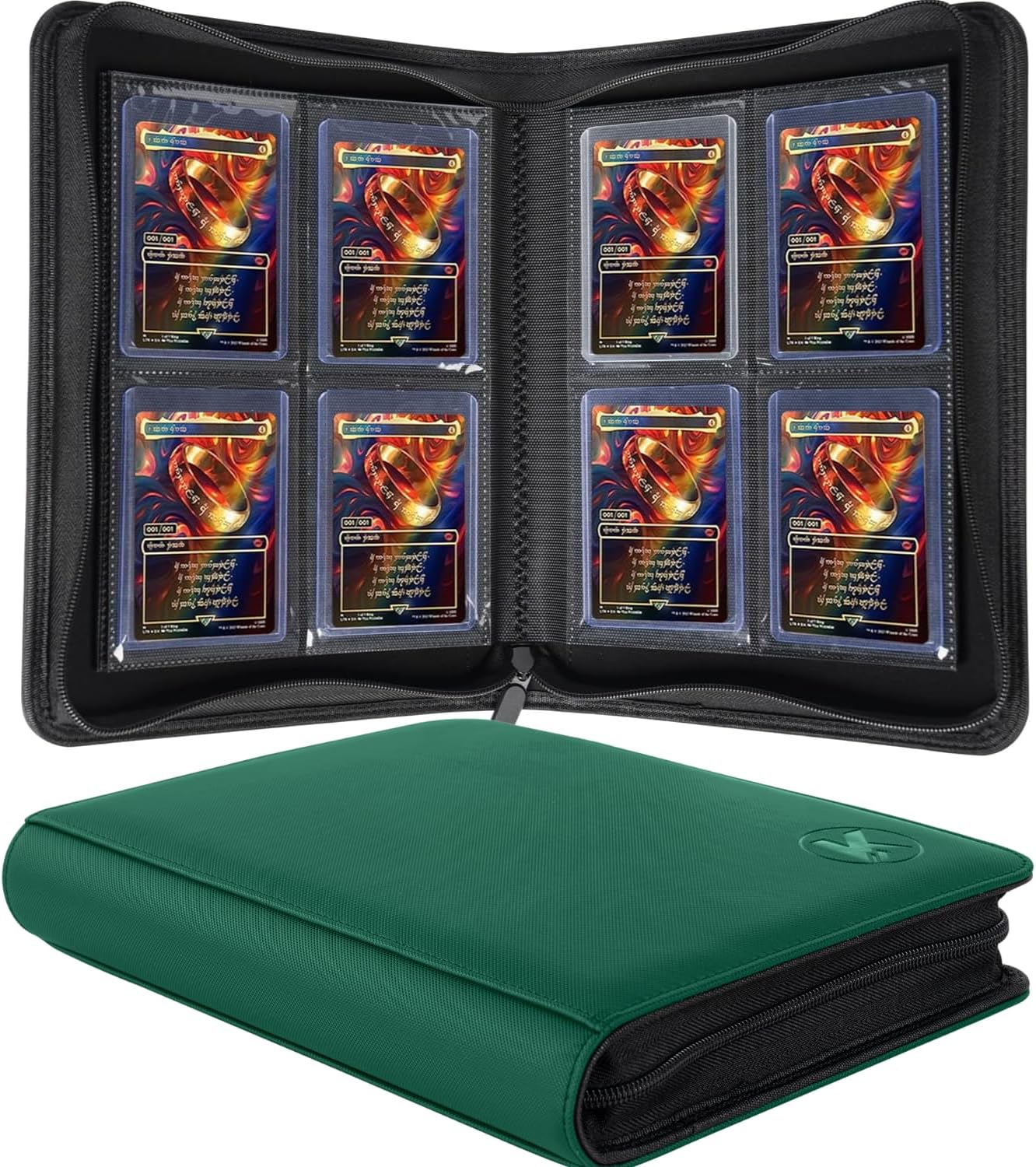 Toploader Binder, Holds 128+ Toploaders, 4 Pocket Top Loader Card Storage Case, Double-Sided Pockets for trading card in 3 x 4'' Toploaders(Green)