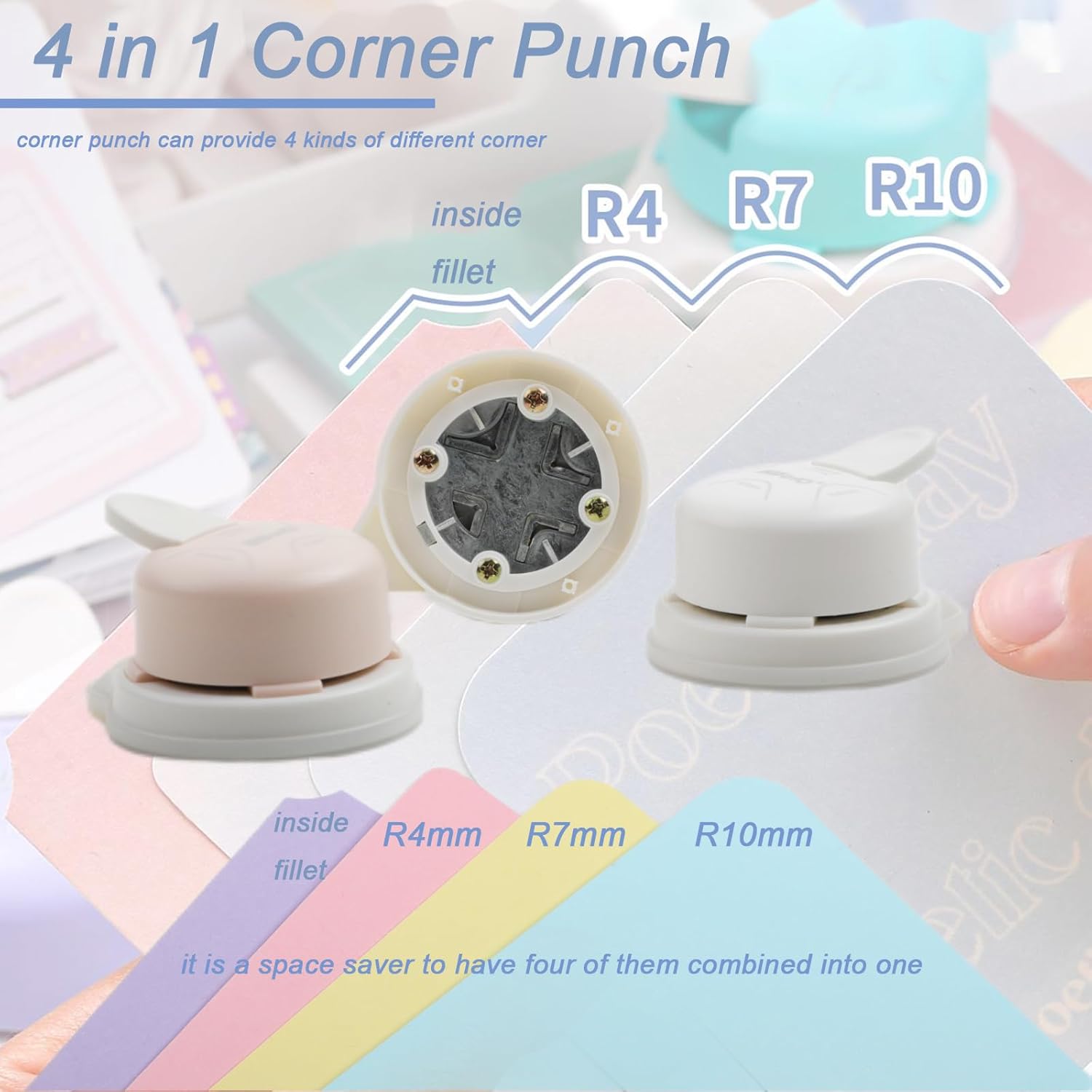 2 Pieces Corner Punch 4 in 1 Corner Rounder Punch Paper Corner Rounder for Making Scrapbooking (R4+R7+R10+Inside Corner) (White and Purple)