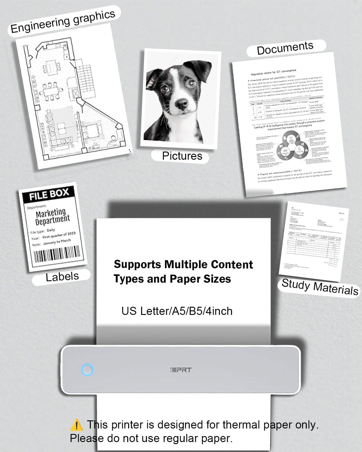 - ✅ Gift Worthy Printer for Work or Study– This compact thermal printer supports US Letter/ A4/ A5/ B5 / 4-inch paper sizes. Print PDFs, notes, receipts, and reports on demand. Ideal for students, digital nomads, field professionals, or anyone needing portable printing—makes a practical and thoughtful gift too.