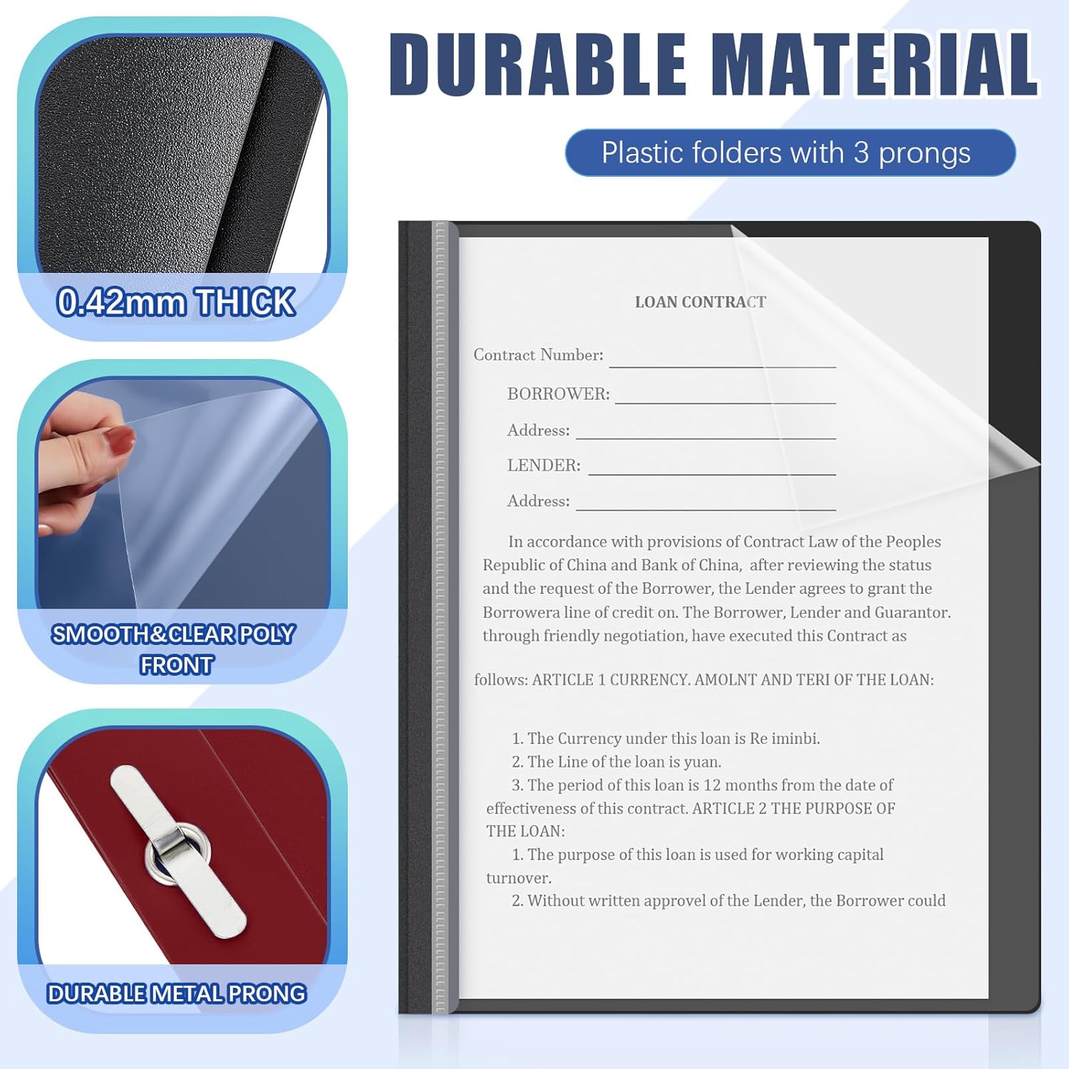 - Easy to Use: the presentation folder is equipped with 3 prongs, which can help you fix files firmly and avoiding them from being lost; And the transparent front page gives you a clear view of the contents inside the folder without leafing through, convenient and easy to use