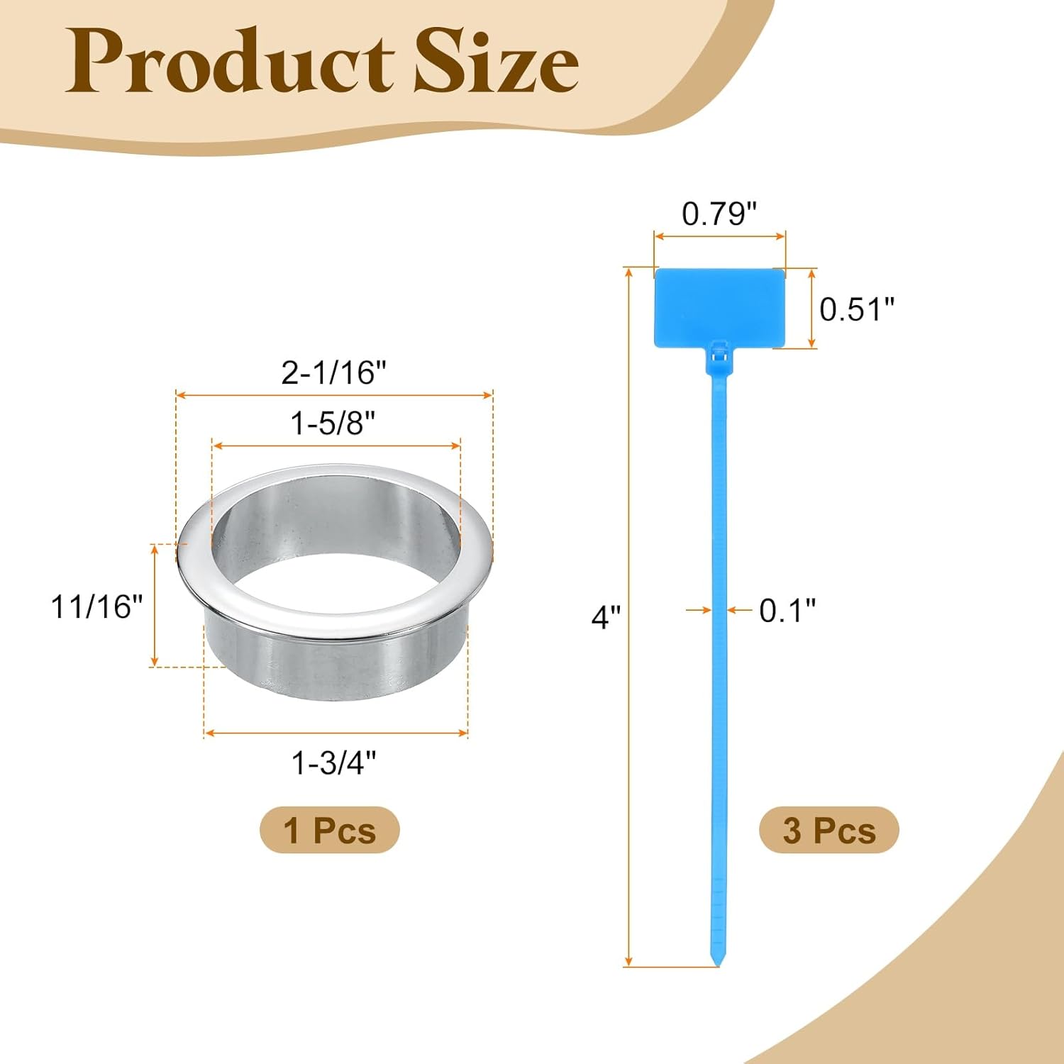uxcell Desk Grommet, 1-3/4" (45mm) Zinc Alloy Cable Hole Cover Wire Cord Organizer with Marked Cable Ties for Home Office Desktop Wire, Silver Tone