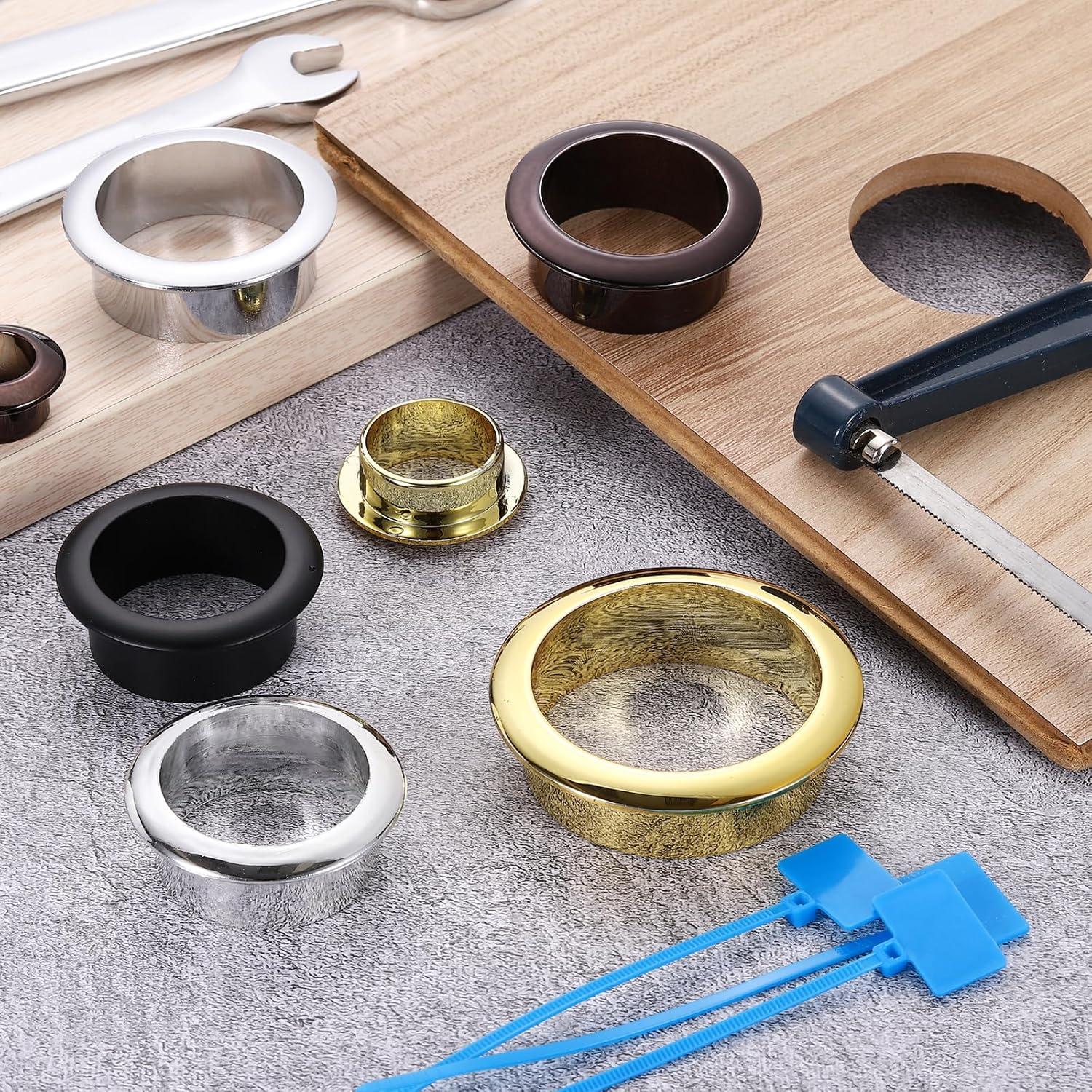 - Design: The cable grommet has a large aperture and can accommodate multiple cables, protecting the wires from friction and damage. The desktop hole cover has a metallic luster, a beautiful appearance, well match your desktop
