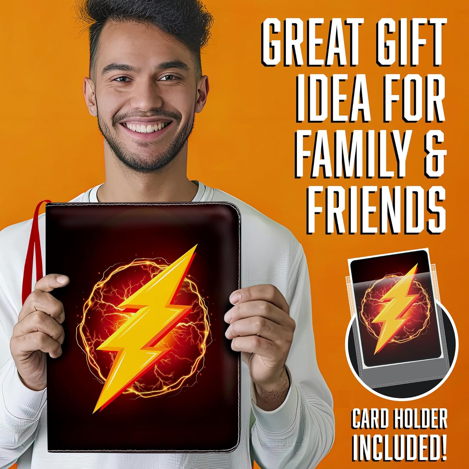 - [Durable PU Leather with Striking Design] Crafted with a tough PU leather exterior, this card binder not only protects your collection from dust, spills, and wear but also stands out with a bold and energetic lightning bolt design on the cover. The smooth matte finish and eye-catching artwork make it ideal for both display and functional use. The design appeals to card collectors of all ages and adds personality to your collection.