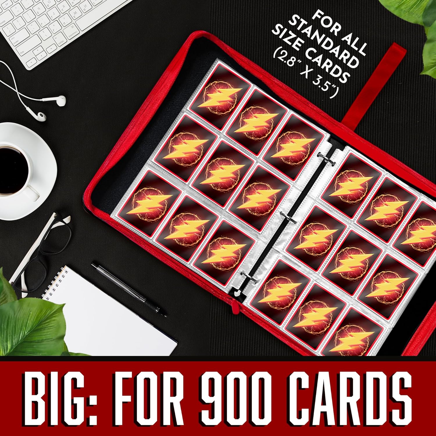 - [Spacious Storage for 900 Cards] This premium trading card binder features 50 double-sided 9-pocket sheets, allowing you to store and organize up to 900 standard-sized cards with ease. Whether you collect sports cards, gaming cards, or hobby cards, this binder offers the space you need without compromising portability. The pages are acid-free, waterproof, and provide excellent transparency so your cards remain in top condition while being easy to view and access.