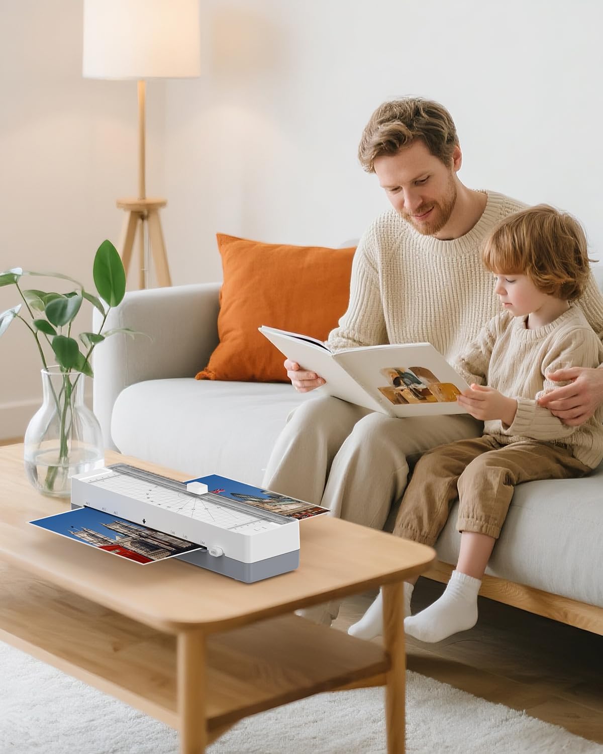 - 【Portable and Space-Saving Design】 With its compact 13.58 x 3.74 x 3.03-inch body and lightweight 1.83lb build, this laminator fits neatly on any desk or shelf and is easy to carry between home, office, or classroom.