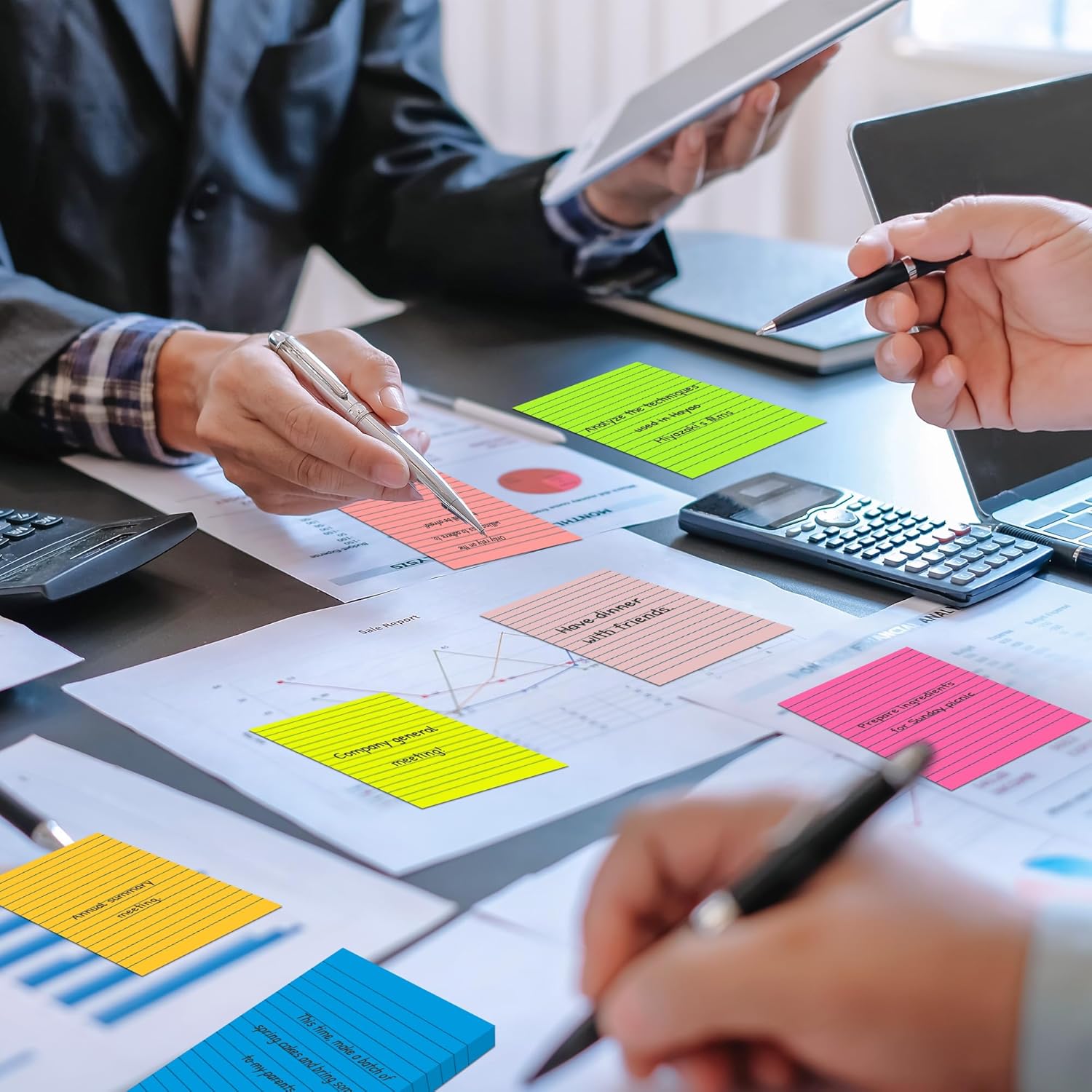 (15 Pads) Lined Sticky Notes 4x6 in Post, 7 Bright Colors with Lines Self-Stick Note Pad it, Strong Adhesive, Big Rectangular Sticky Pads for Office, Home, School, Meeting