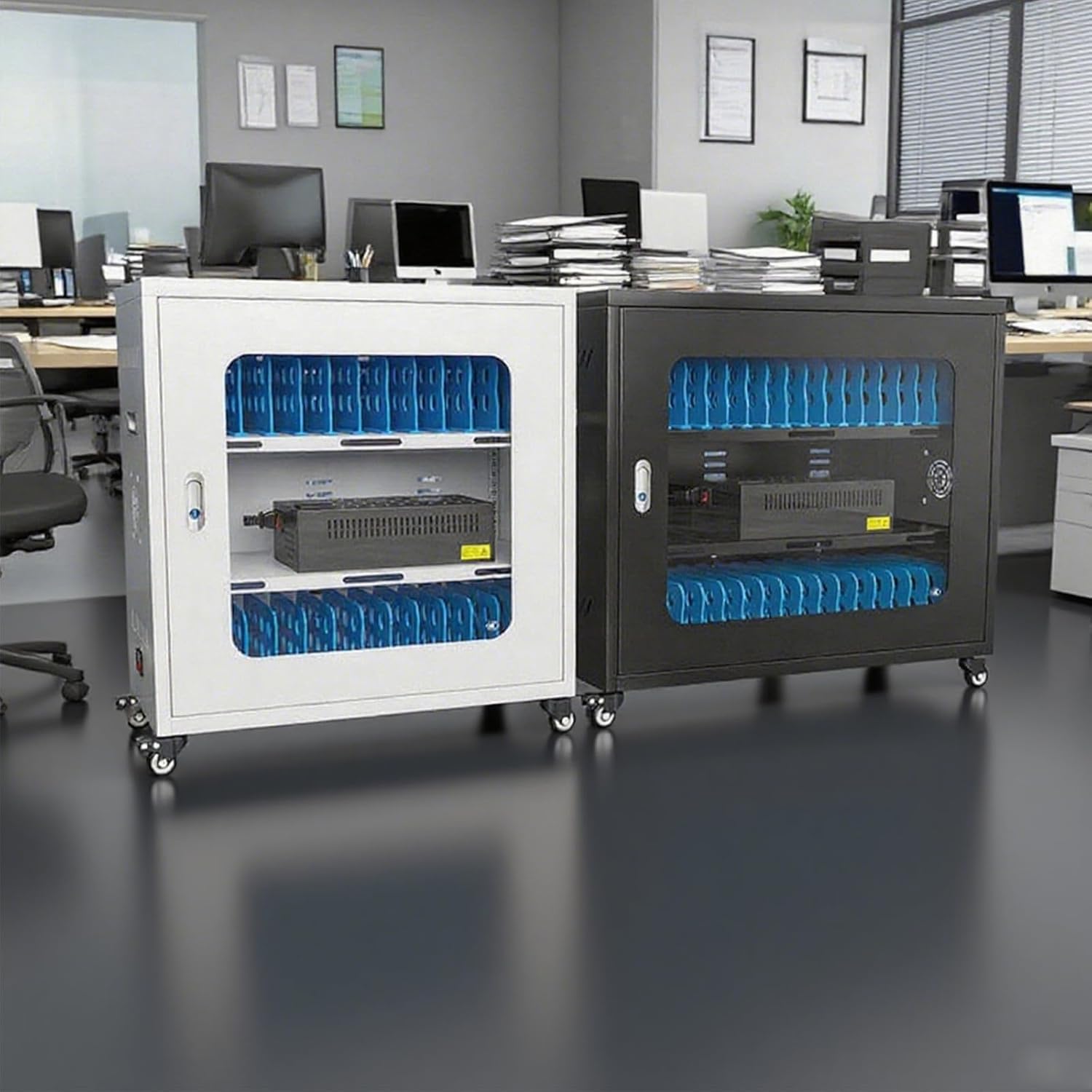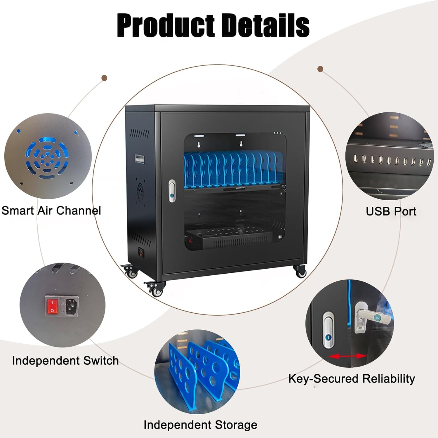 - 【Enhanced Visibility with Tempered Glass Doors】 – Monitor your devices at a glance through the robust tempered glass doors of our charging cabinet! The crystal-clear panels provide full visibility to check charging status and security without unlocking the storage cart. Ideal for classrooms and libraries, this feature allows teachers and staff to efficiently manage Chromebooks, laptops, and tablets while maintaining a sleek, modern black aesthetic. The strengthened glass resists scratches and impacts, ensuring durability alongside effortless supervision.